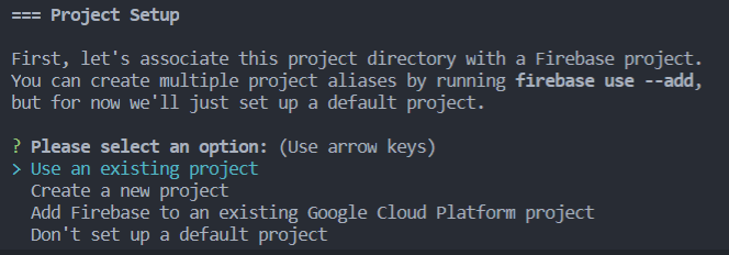 Once you select the above option you can see all the projects present in your firebase account in that select the project in which you want to host