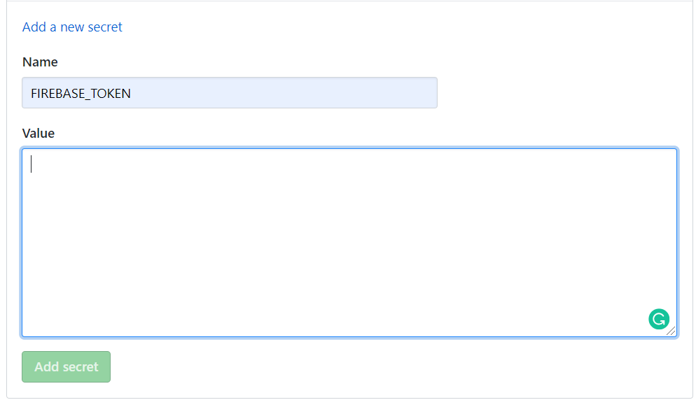 - Now you’re almost there, go back to GitHub click on setting > click on the secret tab to add Firebase Token